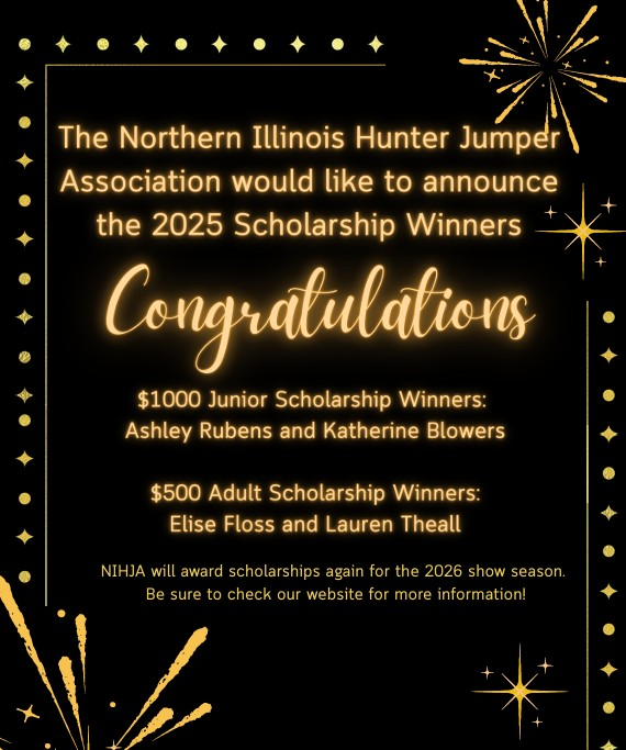 NIHJA will award (2) scholarships to junior riders (riders who are under the age of 18) in the amount of $1,000 and (2) scholarships to adult riders in the amount of $500.